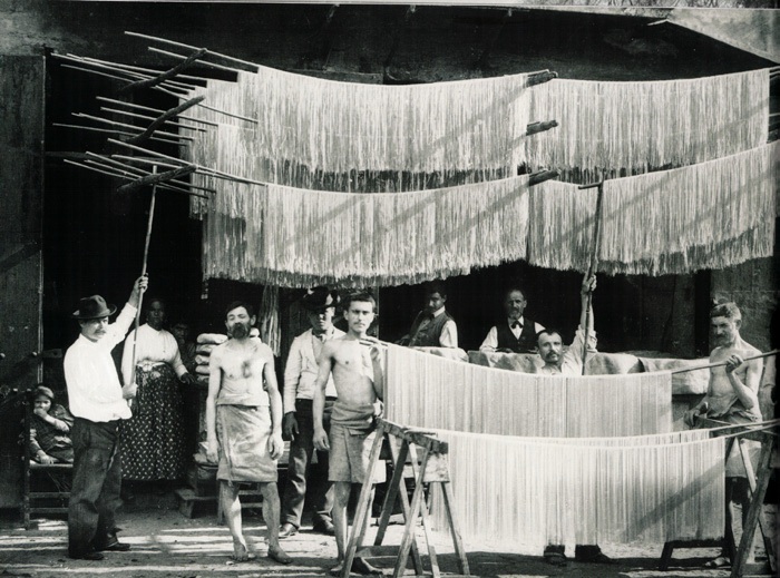 Almeno fin dal XVI secolo l’Italia è la culla della pasta secca, se ne conoscono e si codificano le procedure per la sua produzione artigianale e domestica specialmente nel sud della Penisola e in particolare in Sicilia e Campania, come ci ricorda Goethe nel suo “Viaggio in Italia” quando il 29 maggio 1787, a Napoli assaggia i “ … maccheroni, specie di pasta cotta di farina sottile, morbida e ben lavorata che viene foggiata in diverse forme: dappertutto se ne può acquistare d’ogni genere per pochi soldi”.