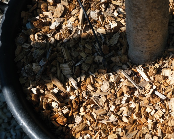 Ciò ha portato a una drastica riduzione dei prodotti antigerminanti distribuiti in vaso, consentendo parallelamente benefici agronomici di rilievo, soprattutto per quanto concerne la temperatura e il mantenimento dell’umidità. Anche in pieno campo esistono test promettenti. Stavolta il materiale utilizzato ha una provenienza simile ma diversa: si tratta del materiale di risulta dalla produzione dei pali di castagno. La corteccia di queste piante presenta caratteristiche interessanti, come la presenza di una piccola quantità di tannino.
