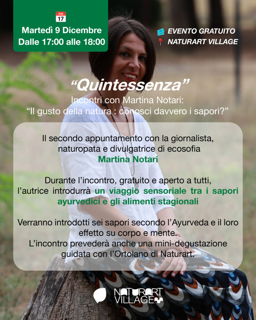Martedì 9 dicembre – Quintessenza con Martina Notari: “Il gusto della natura”