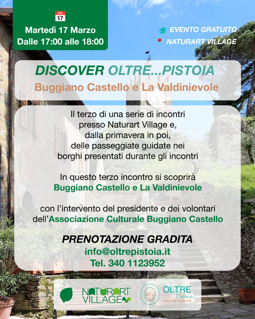 Terzo appuntamento della serie Discover Oltre… Pistoia, dedicata alla valorizzazione dei borghi locali. Questa volta l’incontro sarà incentrato su Buggiano Castello e la Valdinievole.